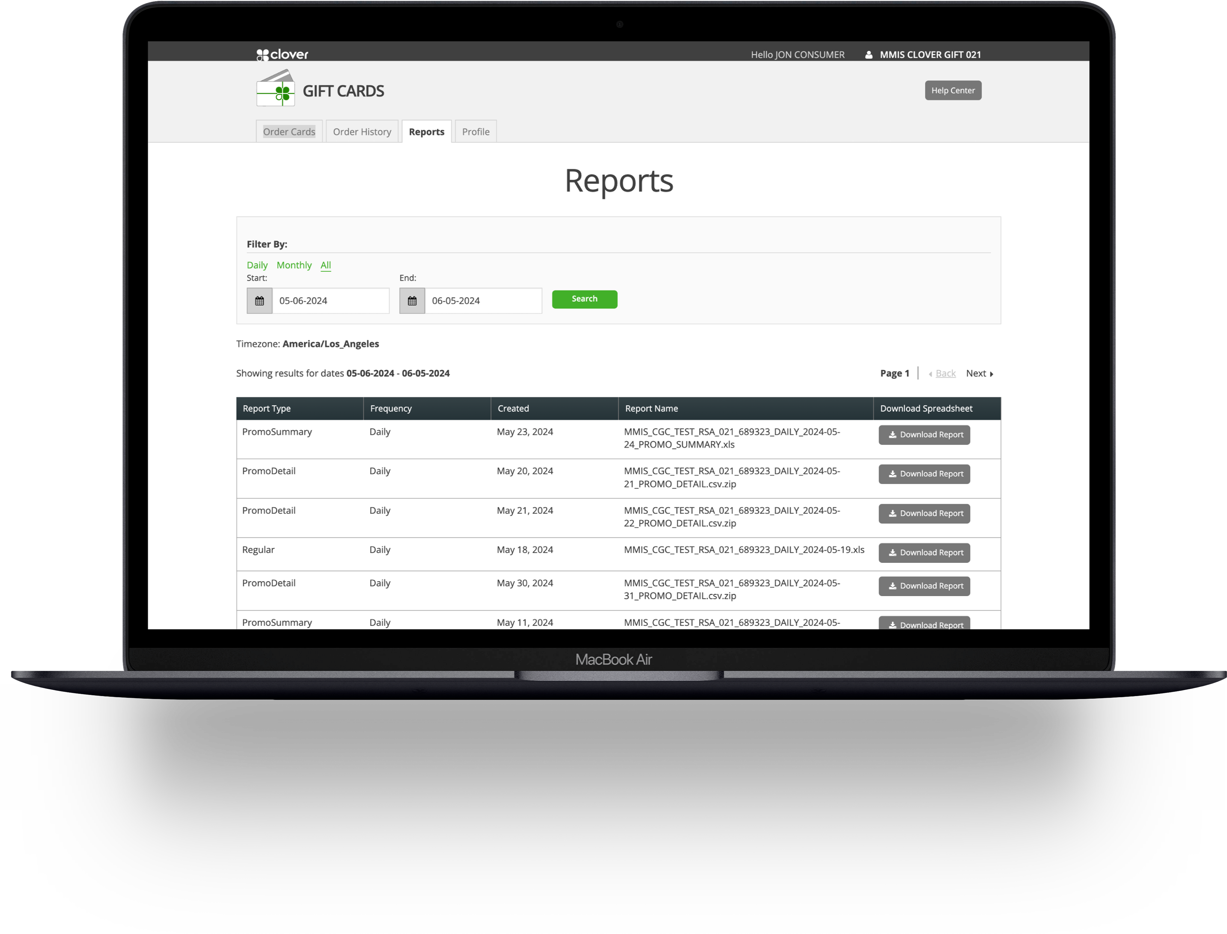 View and download all of your gift card reports and outstanding liability reports.